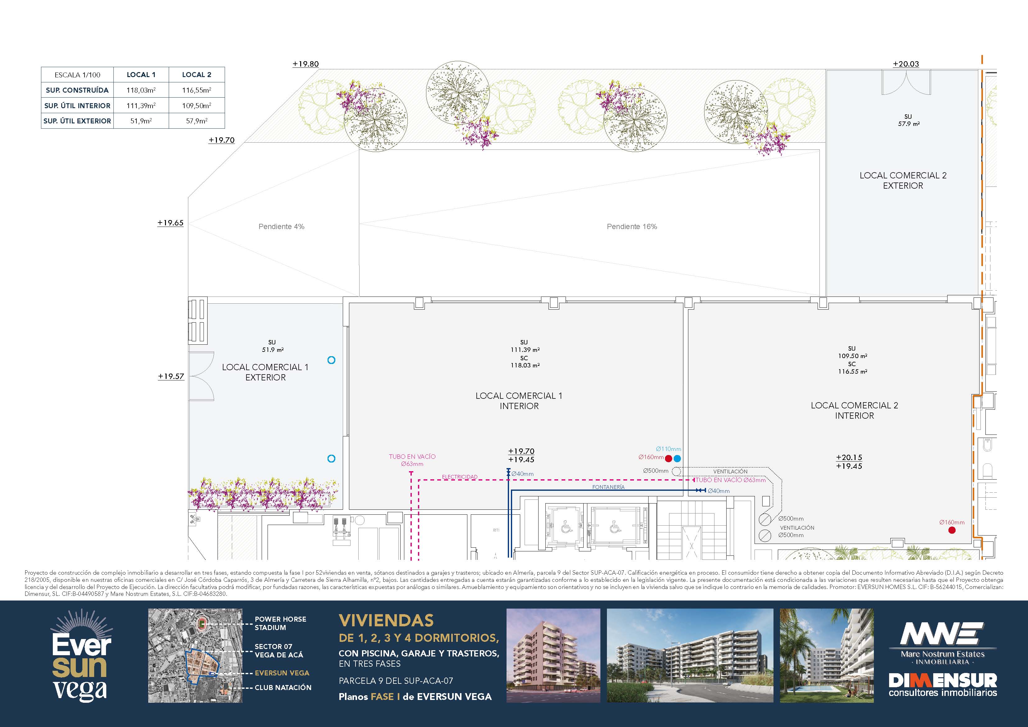 Este local, que se entregará en vasto, cuenta con 118 m² construidos y una fachada de 23 metros lineales, en dos fachadas, lo que ofrece múltiples posibilidades de diseño y uso. Además, su cercanía al club de Natación lo convierte en un punto estratégico para atraer a un público diverso. Pertenece al residencial de obra nueva EVERSUN VEGA y es perfecto para adaptarse a las necesidades de cualquier tipo de negocio.