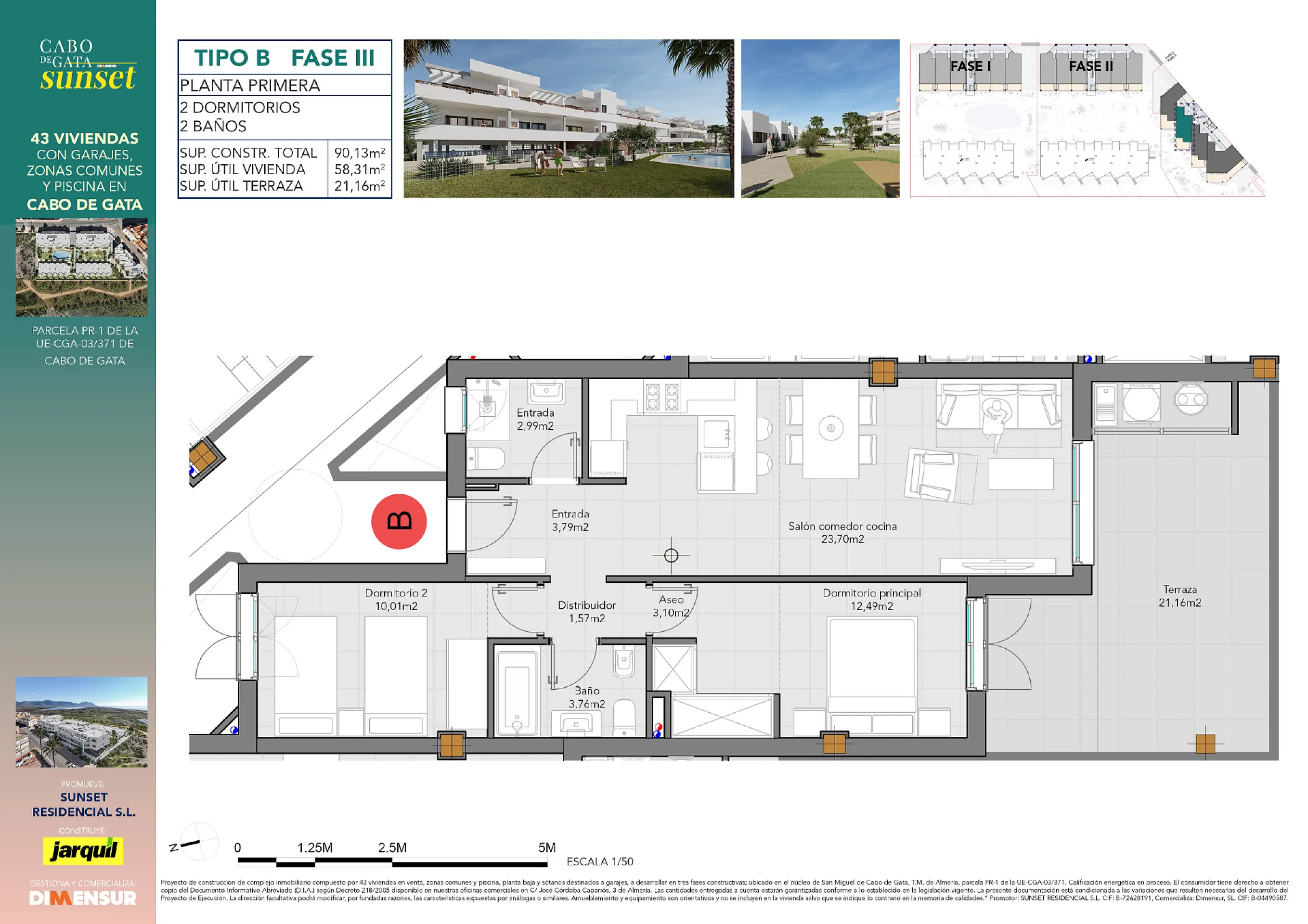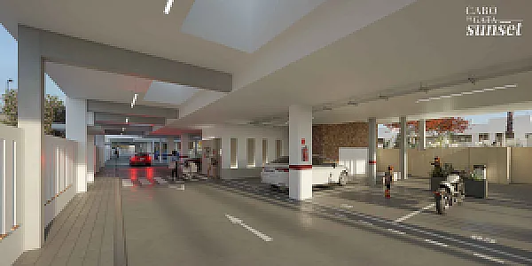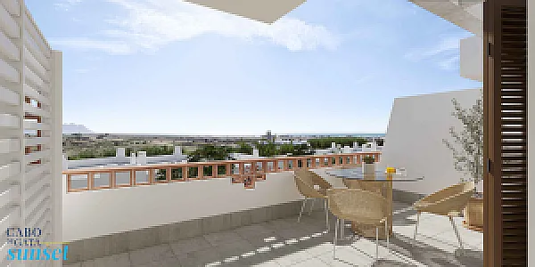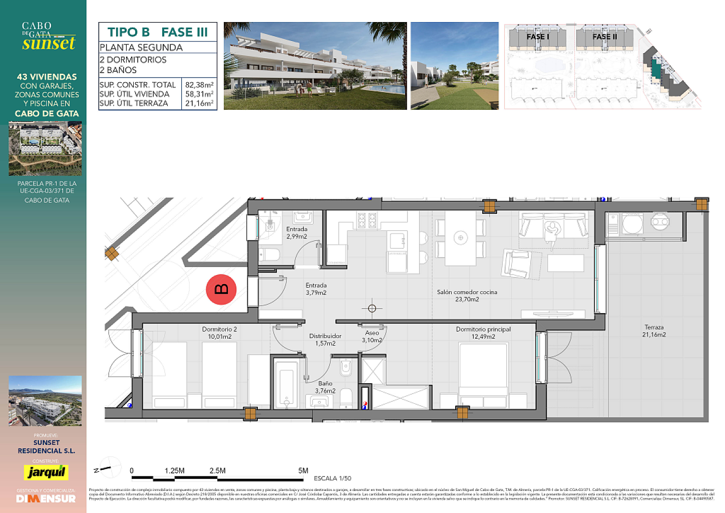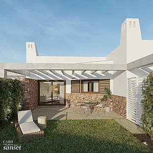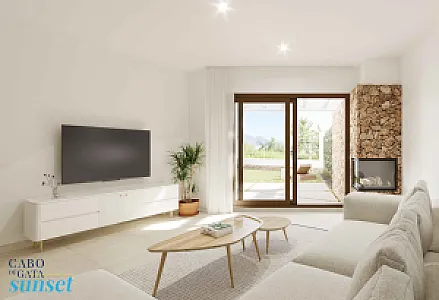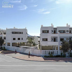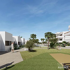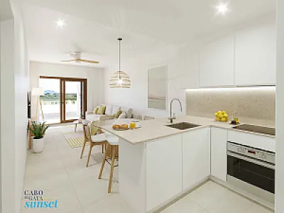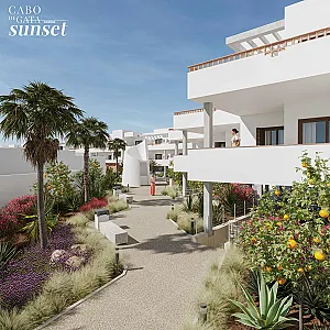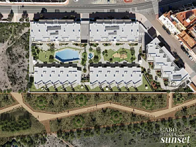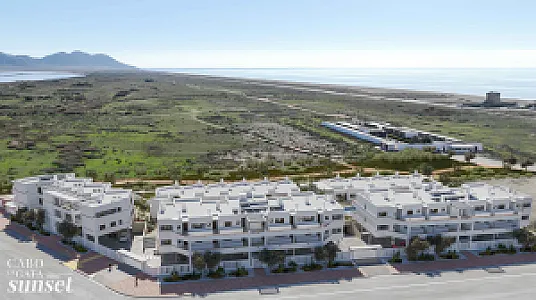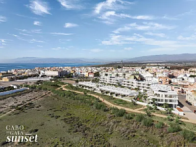 El Residencial Cabo de Gata Sunset es un complejo inmobiliario compuesto por cinco edificios. Tres de los edificios se desarrollan en planta baja y dos alturas y albergarán apartamentos de dos dormitorios con una gran terraza. Los apartamentos situados en plantas 1ª y 2ª quedan por encima de la altura de las casas de planta baja, y cuentan con una planta baja porticada, destinada a tránsito peatonal, zonas de sombreo y aparcamiento cubierto de vehículos. Estos apartamentos tienen incluido una plaza de aparcamiento en planta baja.