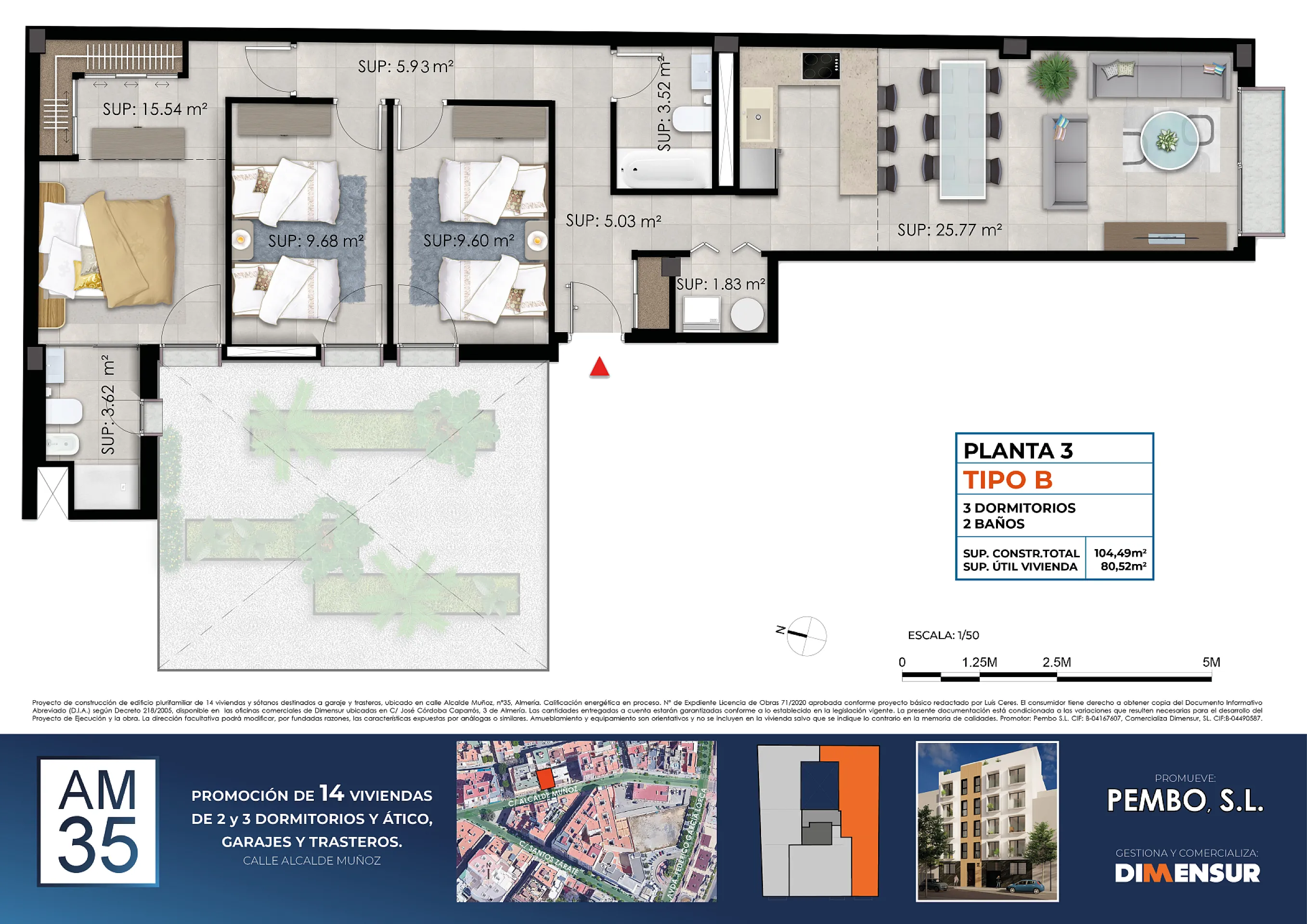 AM35 es un nuevo edificio ubicado en el corazón de Almería, en una ubicación privilegiada que cuenta con amplias viviendas de 2 y 3 dormitorios, garajes y trasteros.