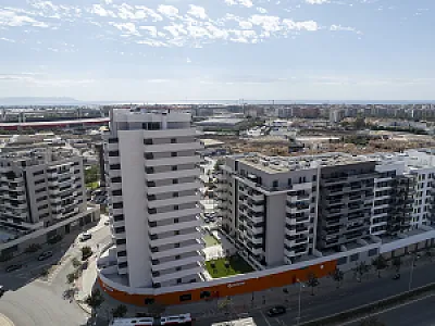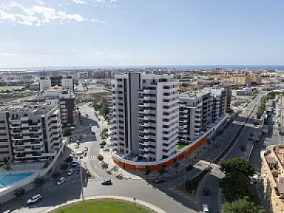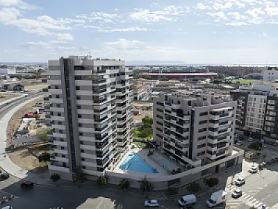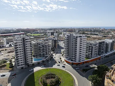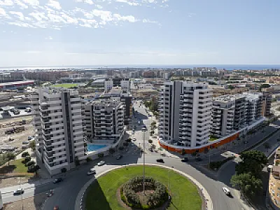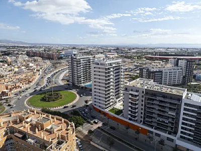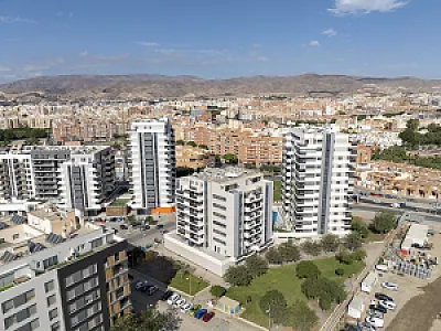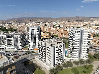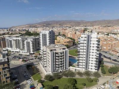 Es un residencial de obra nueva, de diseño moderno y espectacular, sin patios de luces, con todas las viviendas exteriores, con una distribución perfecta y óptima, aprovechando la máxima luz natural, con salones comunicados siempre a grandes terrazas con unas magnificas vistas al mar y/o a la ciudad de Almería.